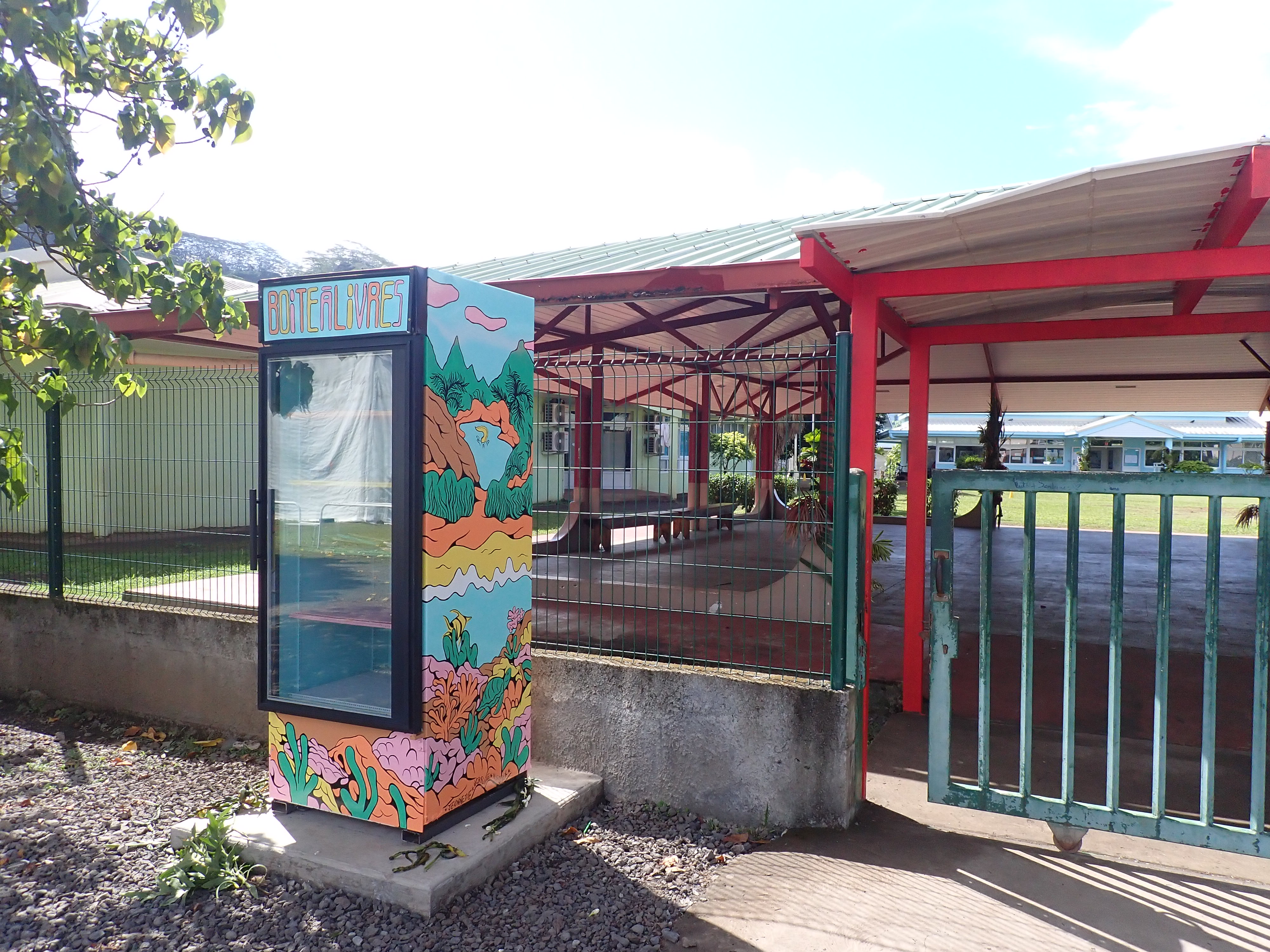 Boîte à livres à l’école Mairipehe, Mataiea, Tahiti, Polynésie Française Peint en collaboration avec Morgane Bel et l’aide de Mme Jeannette2020 :