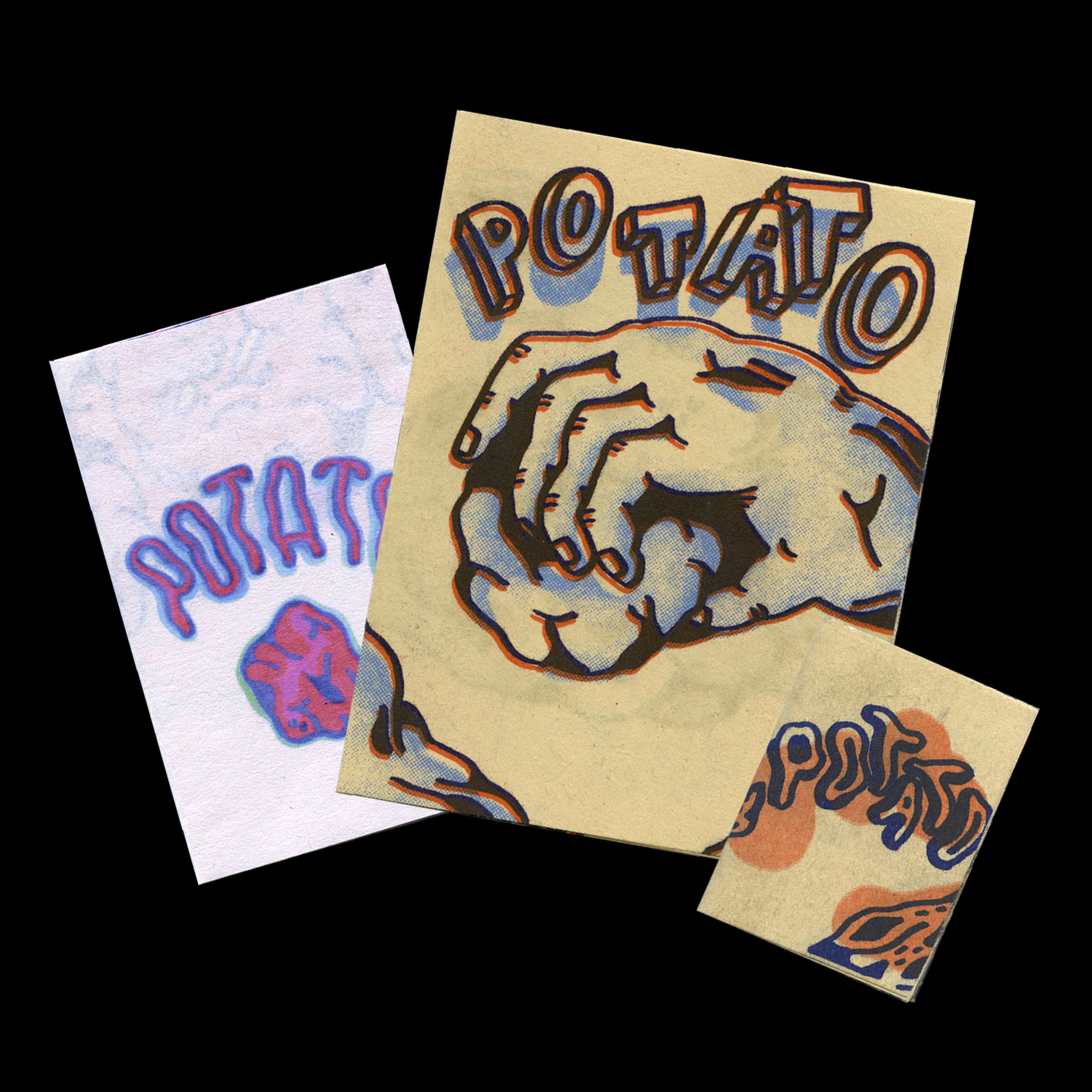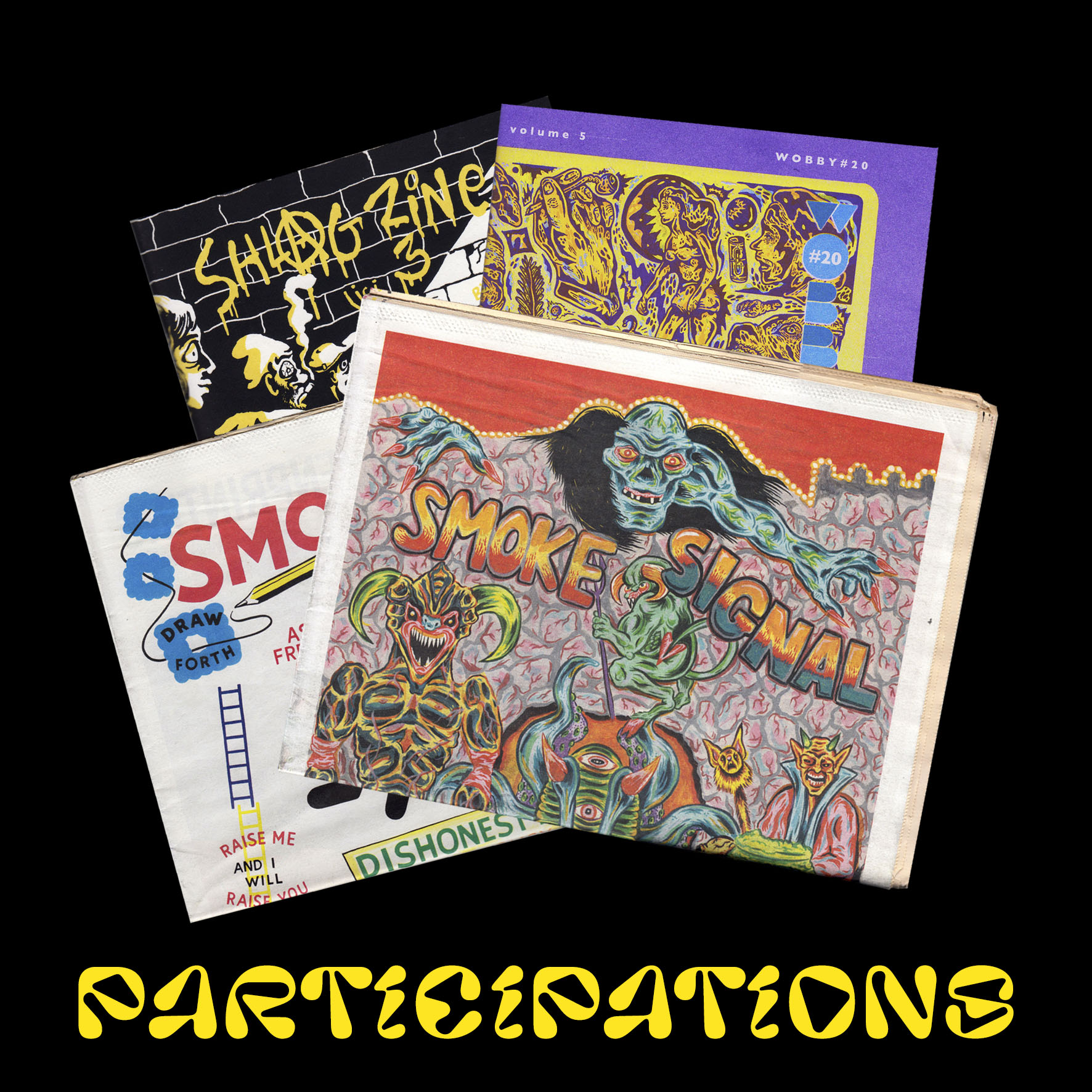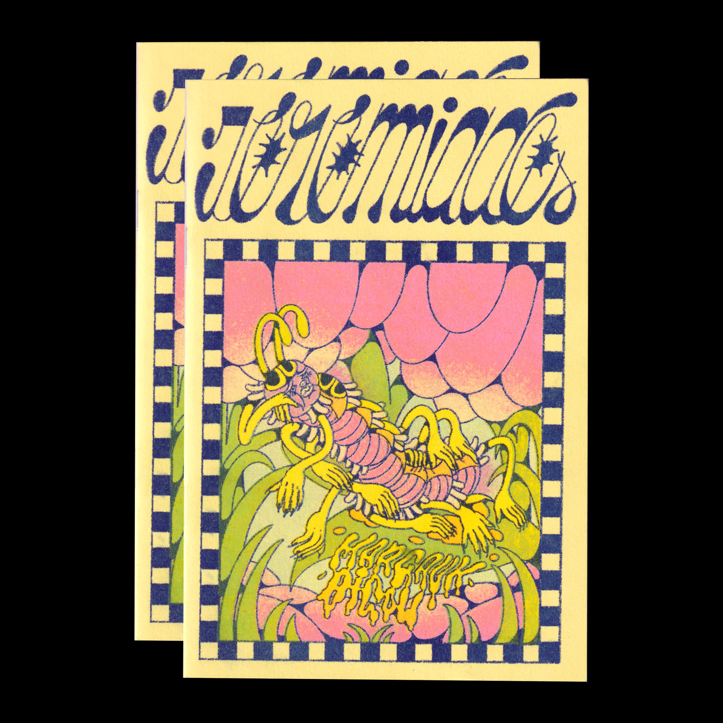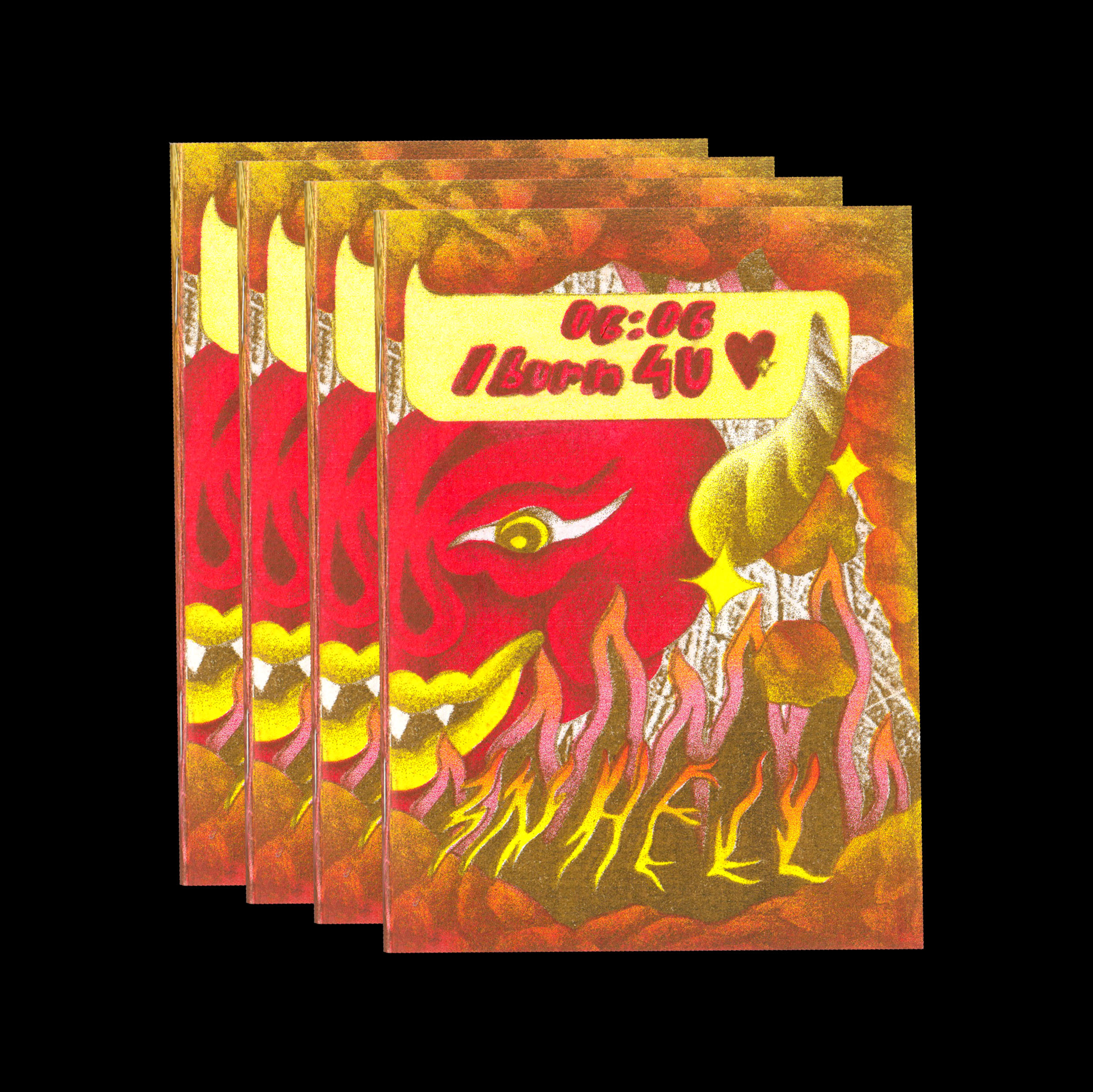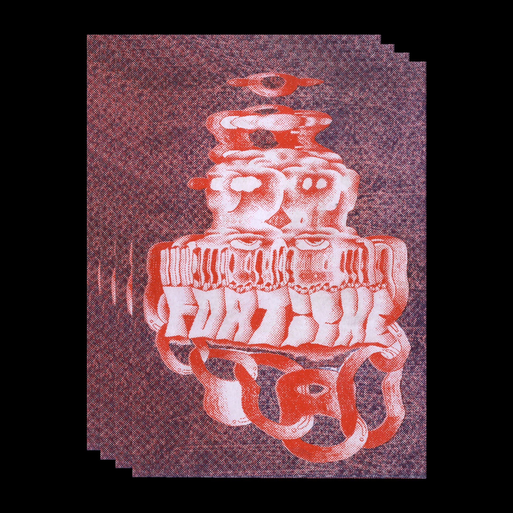 "On this zine’s first page, a smiling man holds a long scroll: “Are you tired? Stressed? Very very tired? Without any hope? In the hole? Read me!” Towards the end, the same man, frowning now, has two heads, his body reflected over the x-axis. The scroll, upside down: “How the HELL am I supposed to read this sh*t?” Margaux Bigou’s zine looks, at moments, like a comic book, but there’s no legible narrative. Indeed, even Bigou’s words can become barely legible as she pushes her magnificently woozy lettering to its limits.